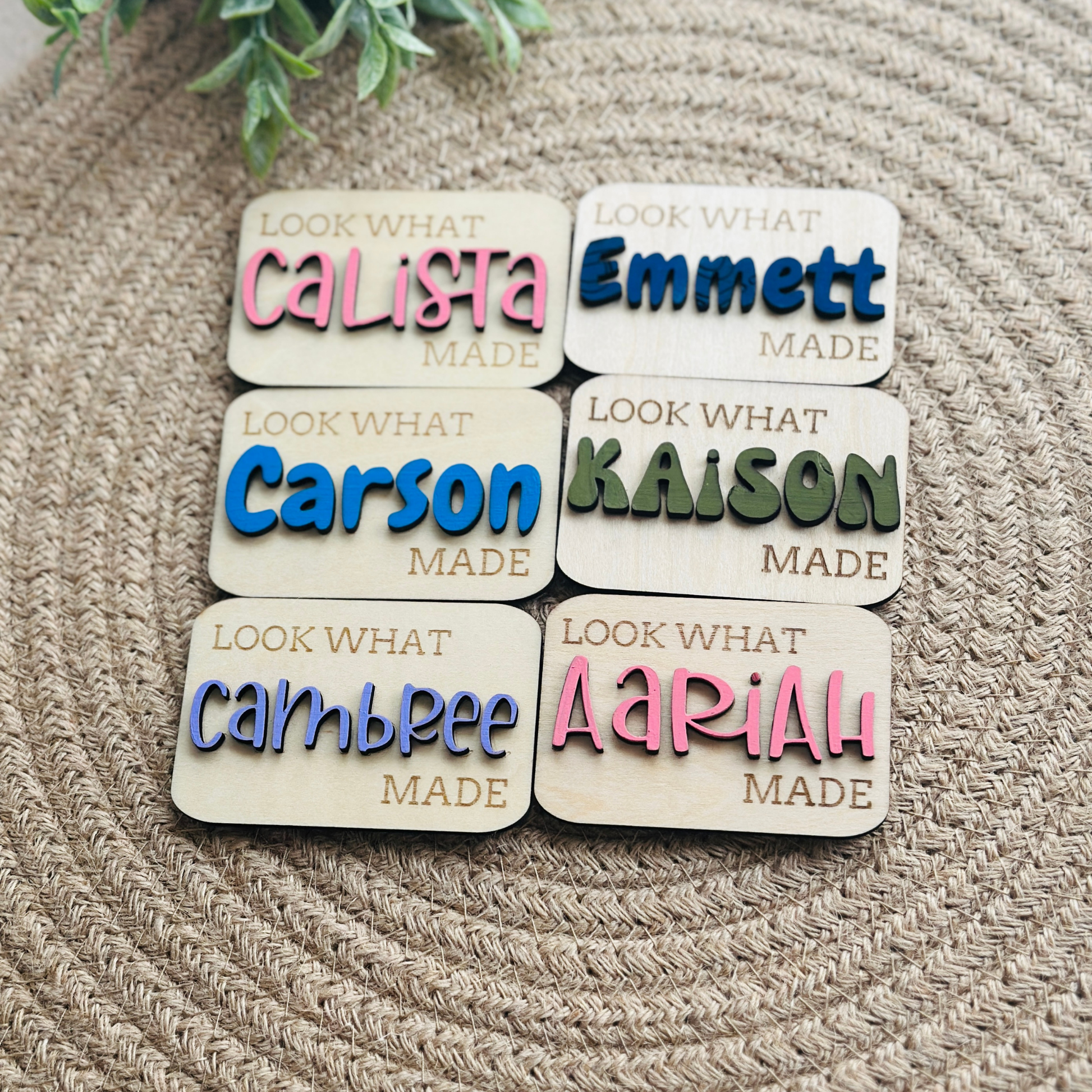 Engraved “Look What I Made” text + 3D personalized name